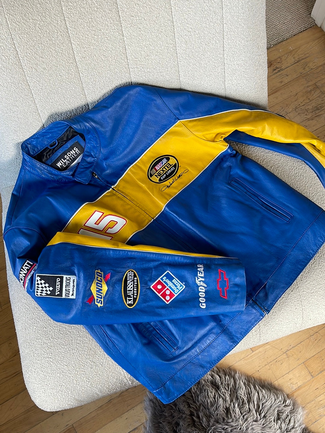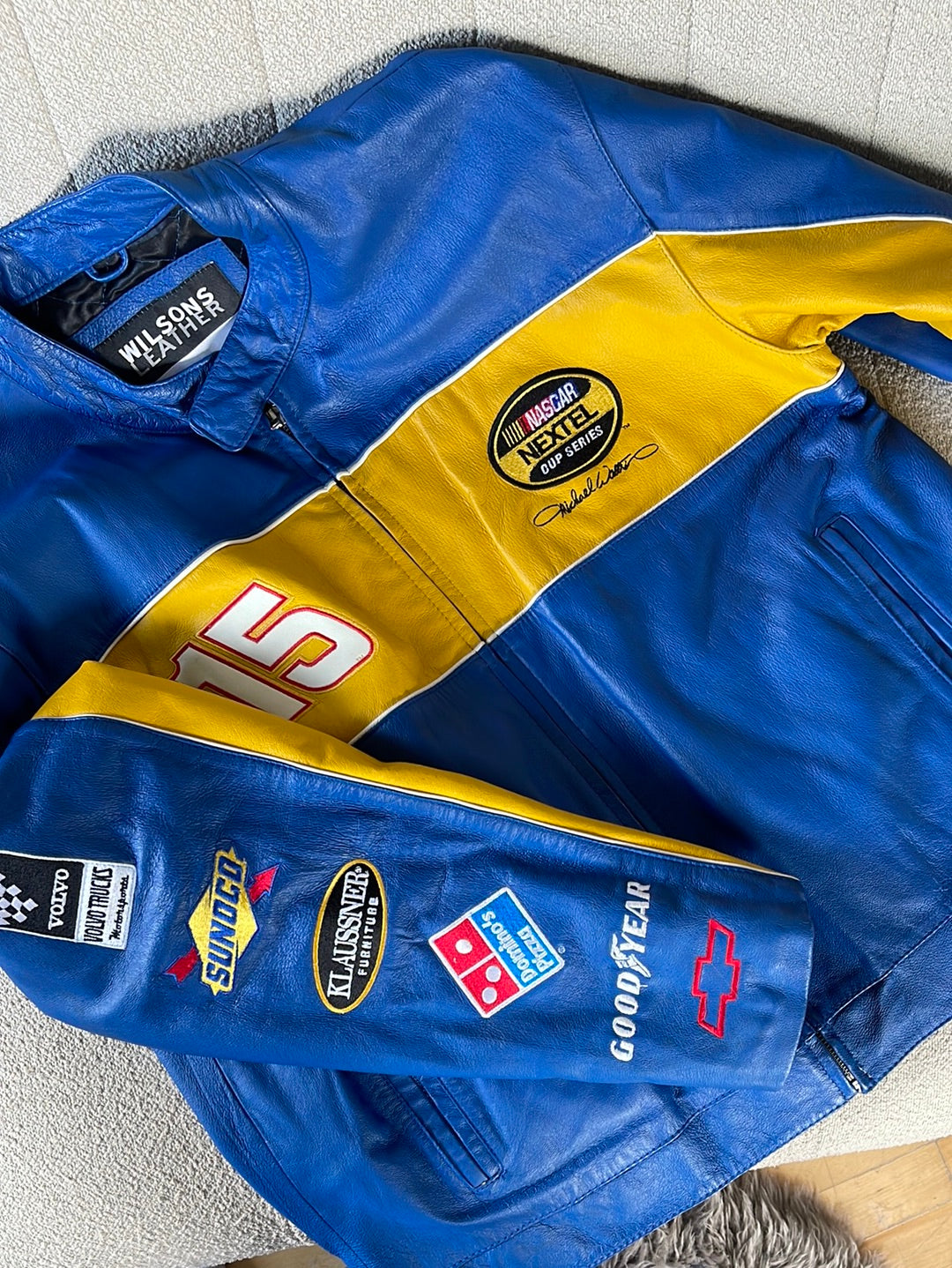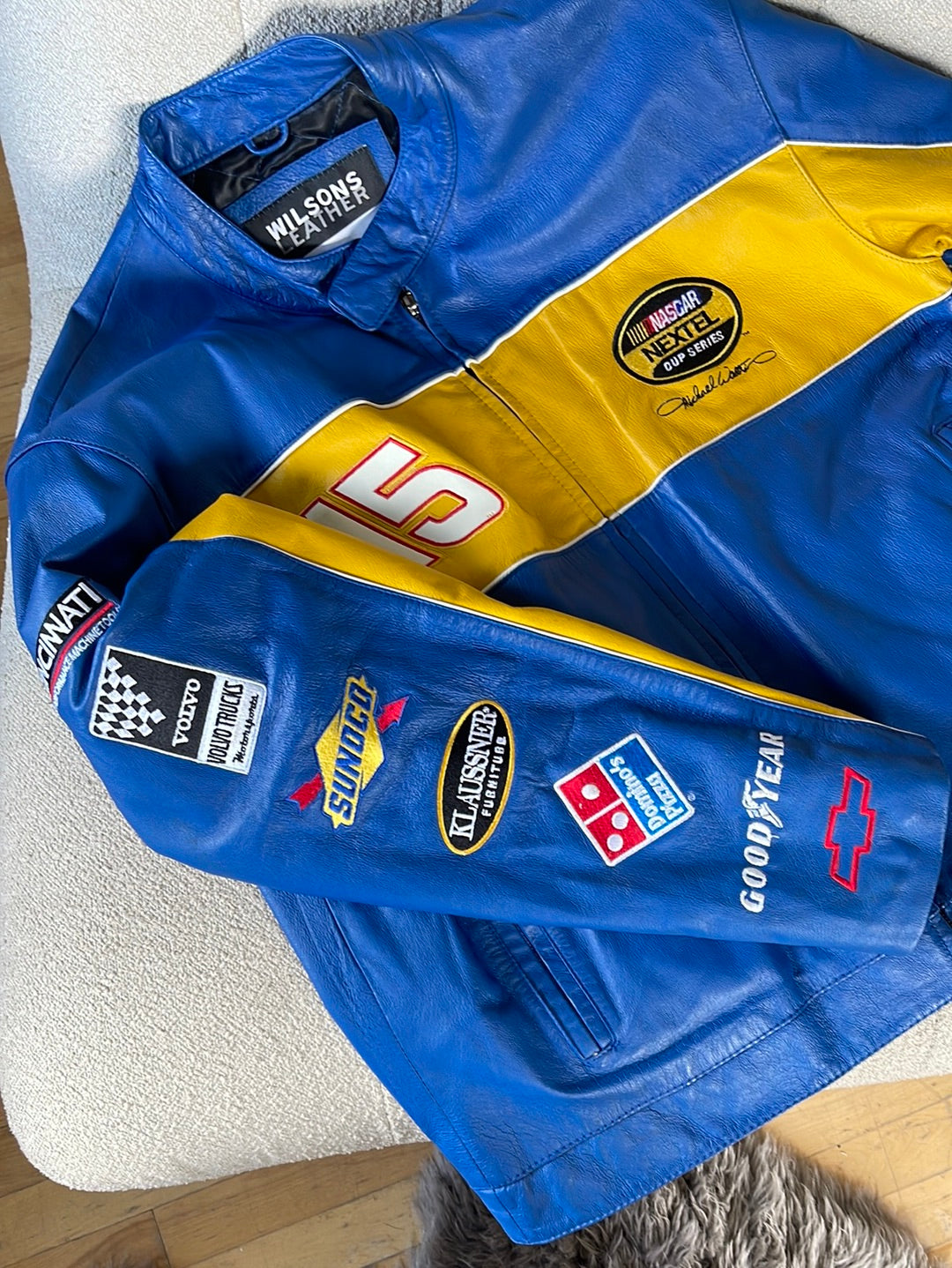 Our blue and yellow leather bomber jacket is a slightly lighter weight than the rest, making it a great daily wear and lighter for casual occasions.