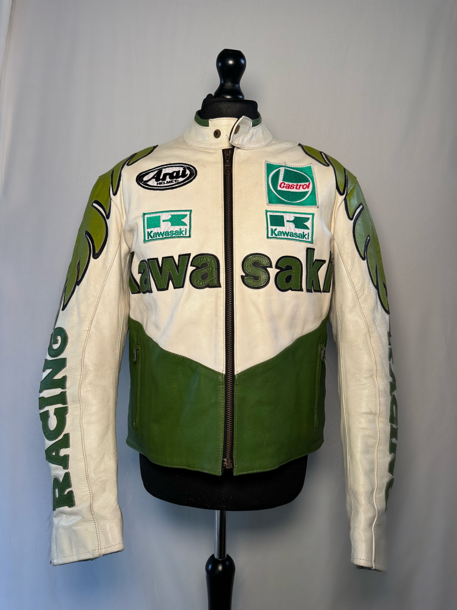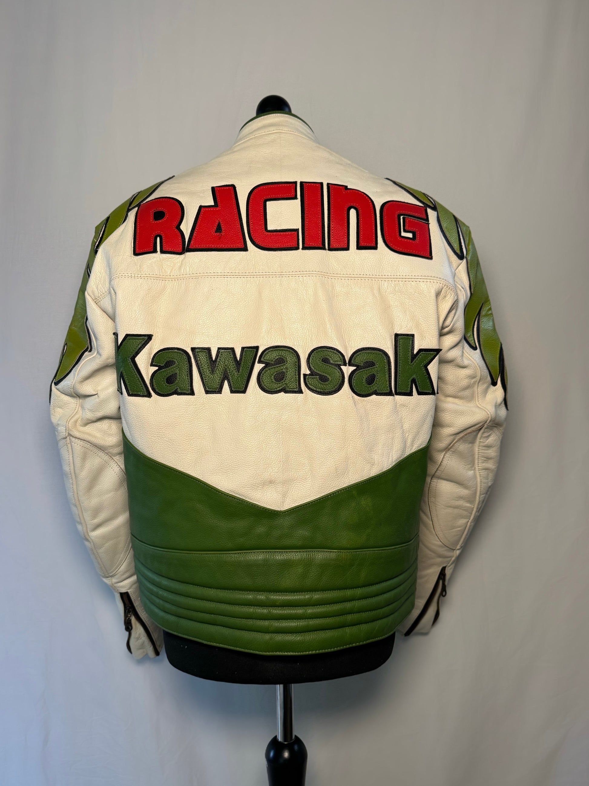 Kawasaki Green Leather Racing Jacket Size Large