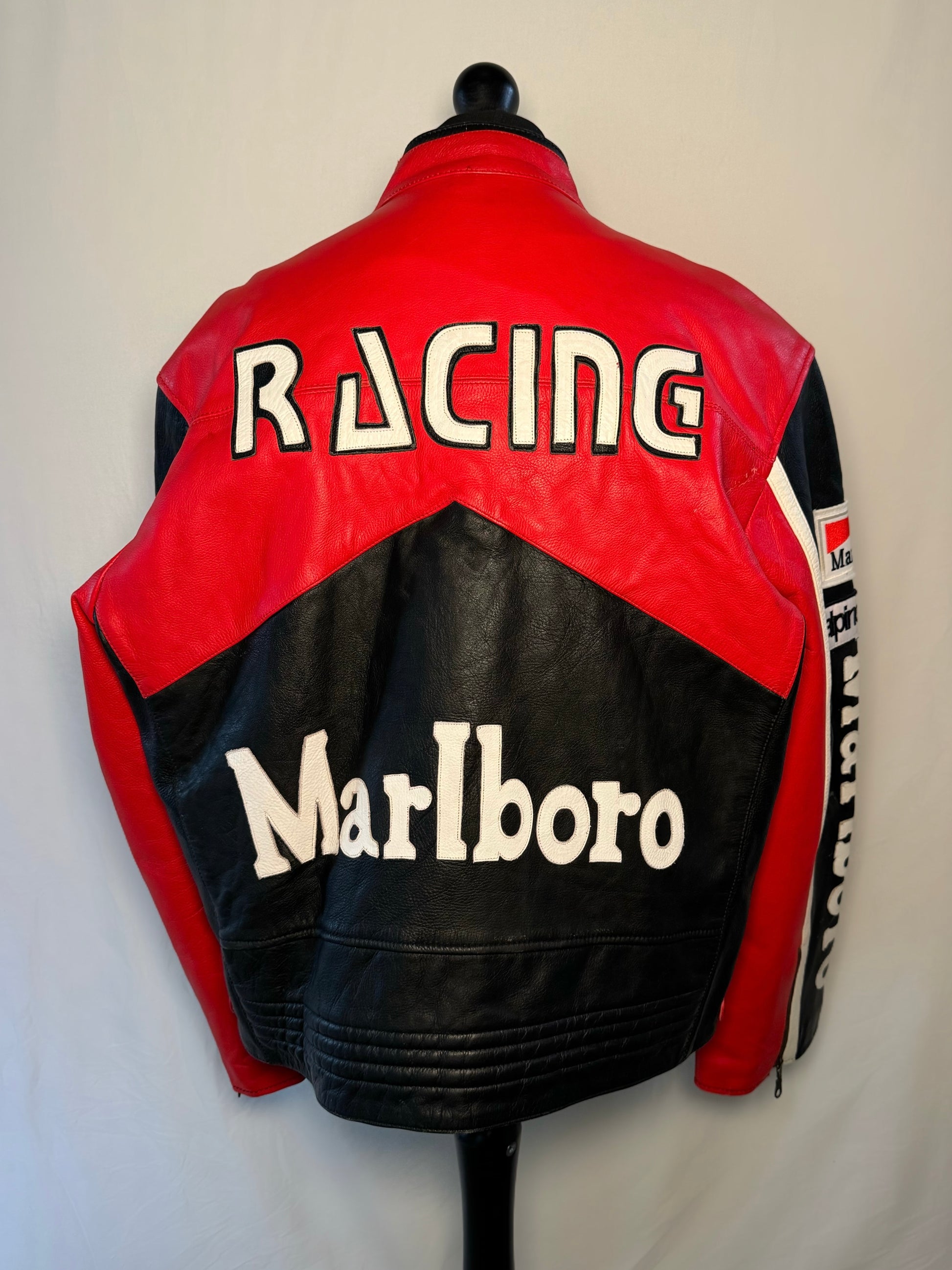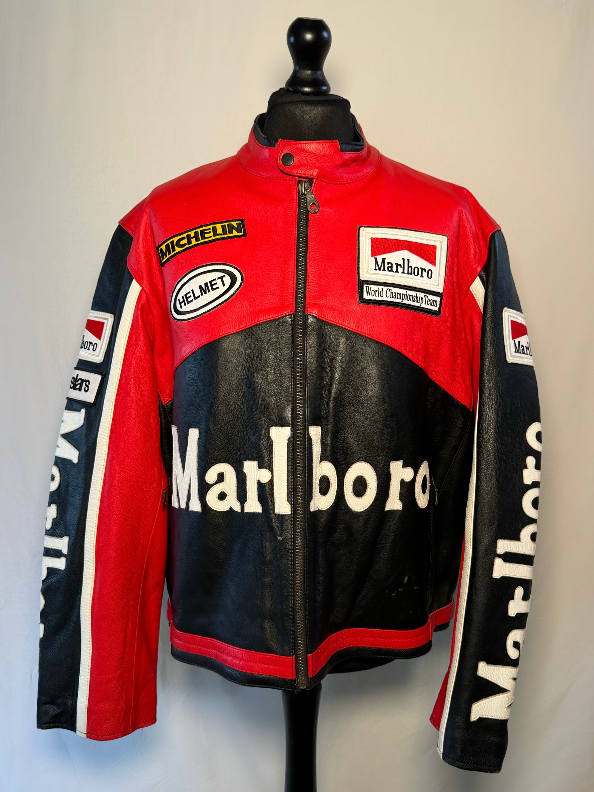 We are loving this Marlboro red & black style racing jacket, designed with red, black and white leather details. One of our freshest jackets, in an excellent condition with little/light signs if wear.