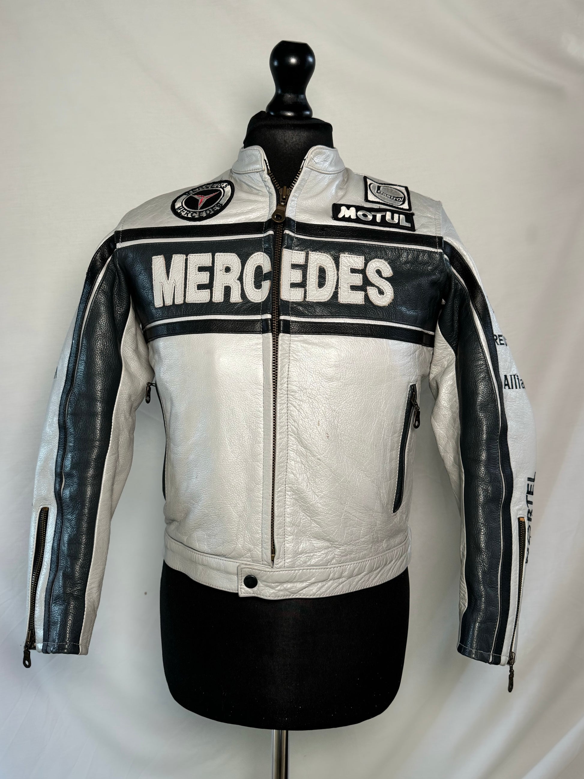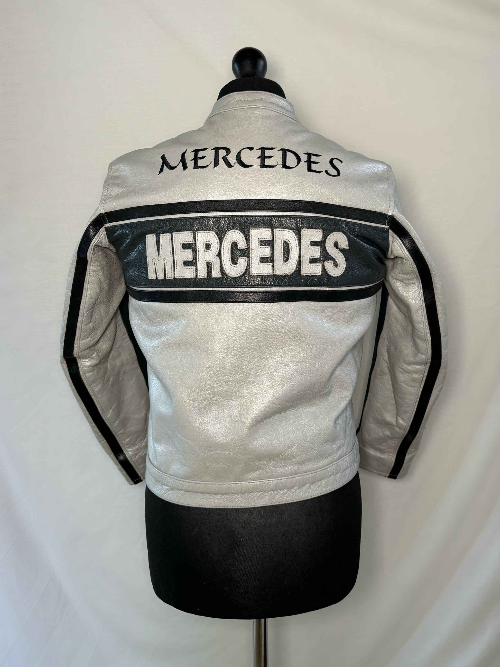 Our Mercedes jacket, crafted from the most perfect dove grey shade of leather, and finished with black detailing.